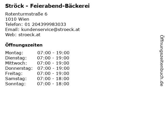 | Öffnungszeiten Ströck - Feierabend-Bäckerei in Wien anzeigen | |