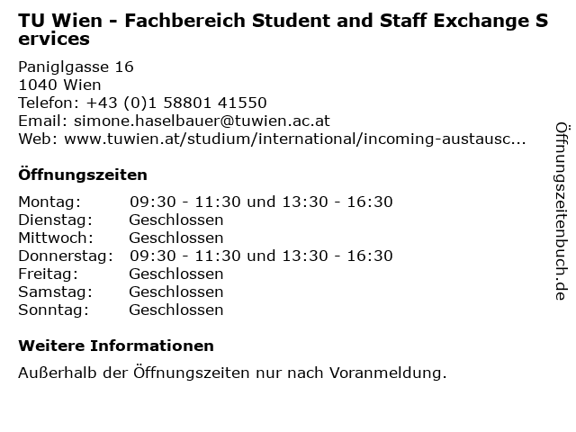 Branchen & Suchbegriffe zu TU Wien - Fachbereich Student and Staff Exchange Services:and, austauschstudierende, exchange, fachbereich, hochschulen, services, staff, student, studierenden, tu, universitäten, wien |