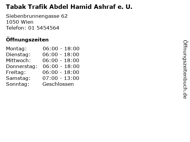 Öffnungszeiten Tabak Trafik Abdel Hamid Ashraf e. U.