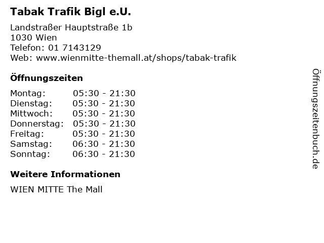 Öffnungszeiten Tabak Trafik Bigl e.U.