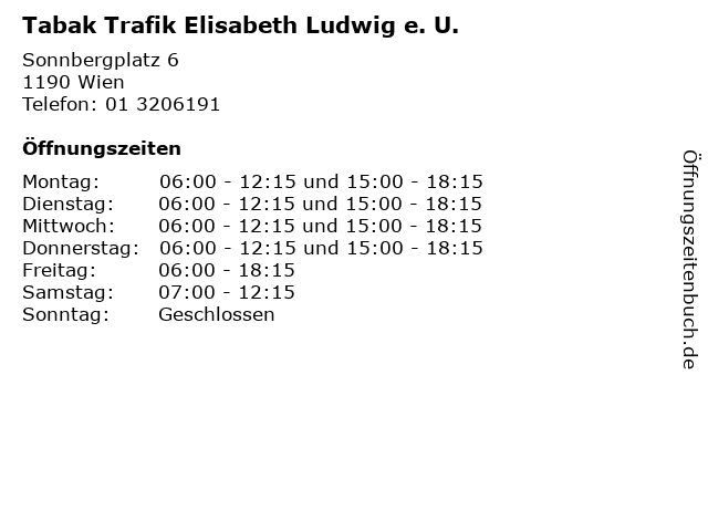 Öffnungszeiten Tabak Trafik Elisabeth Ludwig e. U.