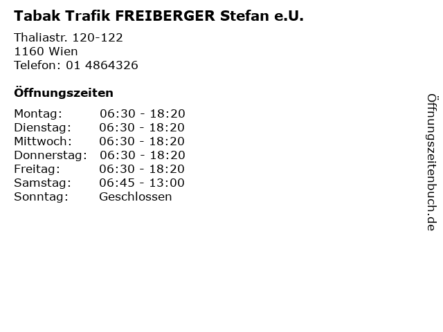 Öffnungszeiten Tabak Trafik FREIBERGER Stefan e.U.