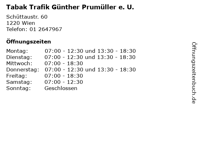 Öffnungszeiten Tabak Trafik Günther Prumüller e. U.