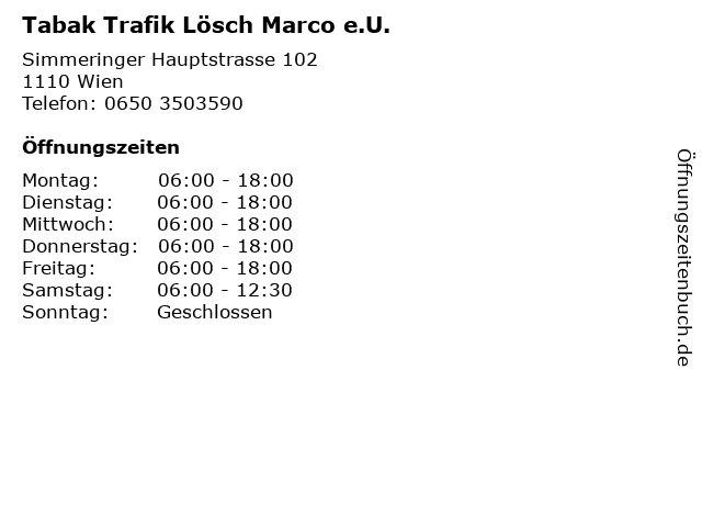 | Öffnungszeiten Tabak Trafik Lösch Marco e.U. in Wien anzeigen | |
