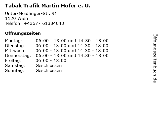 Öffnungszeiten Tabak Trafik Martin Hofer e. U.