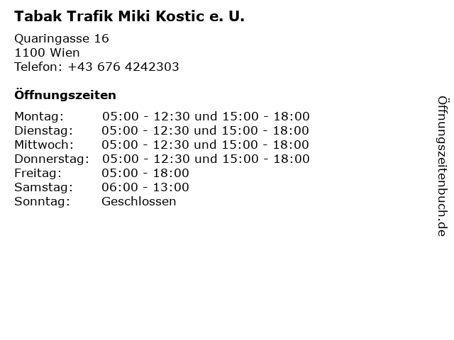 Öffnungszeiten Tabak Trafik Miki Kostic e. U.