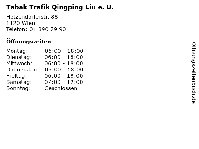 Tabak Trafik (Entfernung: 2,02 km) Schönbrunner Straße 262, 1120 Wien