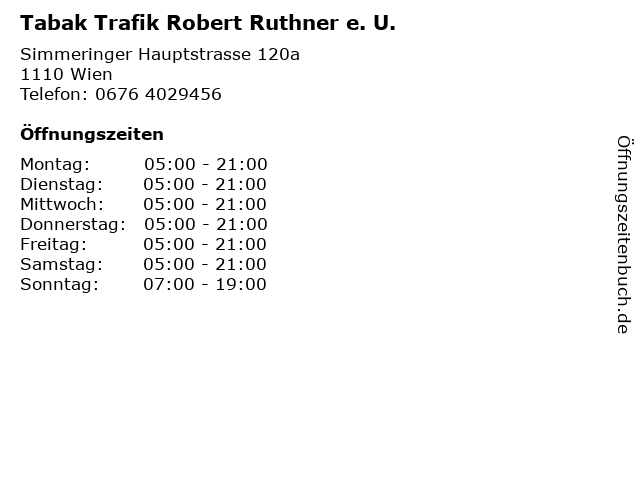 Öffnungszeiten Tabak Trafik Robert Ruthner e. U.