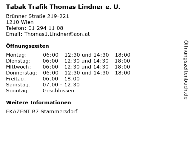 Branchen & Suchbegriffe zu Tabak Trafik Thomas Lindner e. U.:b7, e., einkaufszentrum, kiosk, lindner, lotto, stammersdorf, tabak, tabakwaren, thomas, toto, trafik, u., zeitschriften, zeitungen |