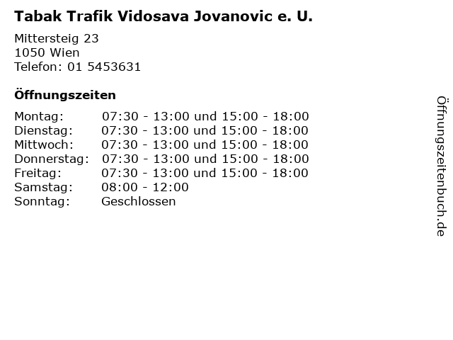Öffnungszeiten Tabak Trafik Vidosava Jovanovic e. U.