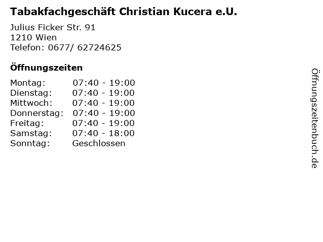 Branchen & Suchbegriffe zu Tabakfachgeschäft Christian Kucera e.U.:christian, e.u., kucera, magazine, tabak, tabakfachgeschäft, tabakwaren, trafik, zeitungen |