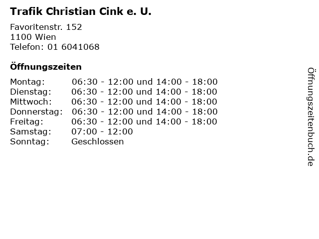 Trafik Christian Cink e. U. in Wien: Telefonnummer, Öffnungszeiten und Adresse