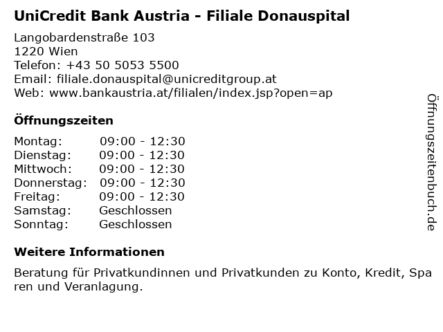 Branchen & Suchbegriffe zu UniCredit Bank Austria - Filiale Donauspital:austria, bank, donauspital, privatkundinnen und privatkunden, unicredit |