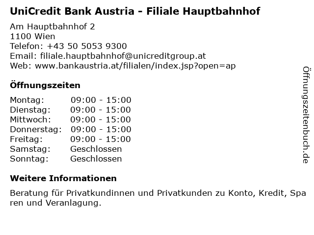 Branchen & Suchbegriffe zu UniCredit Bank Austria - Filiale Hauptbahnhof:austria, bank, hauptbahnhof, privatkundinnen und privatkunden, unicredit |