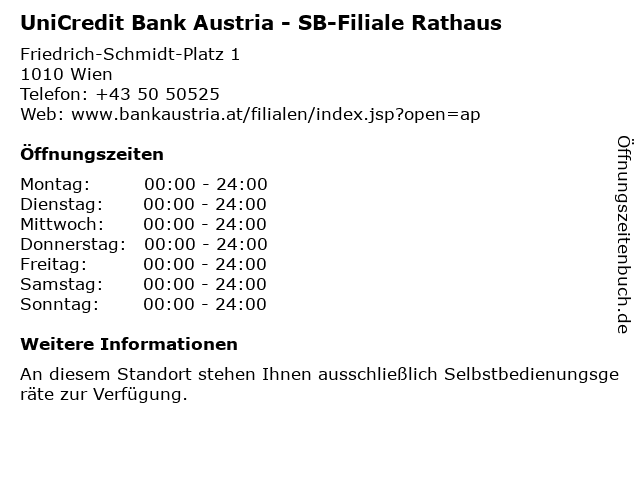 Branchen & Suchbegriffe zu UniCredit Bank Austria - SB-Filiale Rathaus:austria, bank, privatkundinnen und privatkunden, rathaus, sb, unicredit |