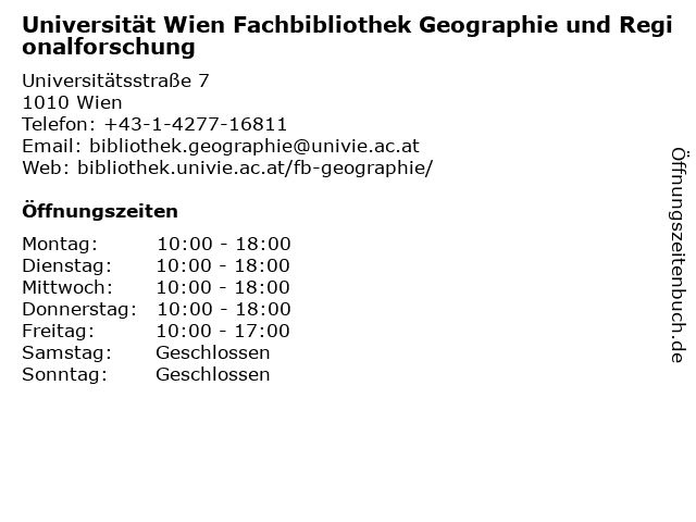 1 Universität Wien Fachbibliothek Philosophie und Psychologie (Entfernung: 0,00 km) Universitätsstraße 7, 1010 Wien 2 Universität Wien Fachbibliothek Kultur- und Sozialanthropologie (Entfernung: 0,00 km) Universitätsstraße 7, 1010 Wien 5 Universität Wien - Fachbibliothek Soziologie und Politikwissenschaft (Entfernung: 0,11 km) Rooseveltplatz 2, 1090 Wien 6 |