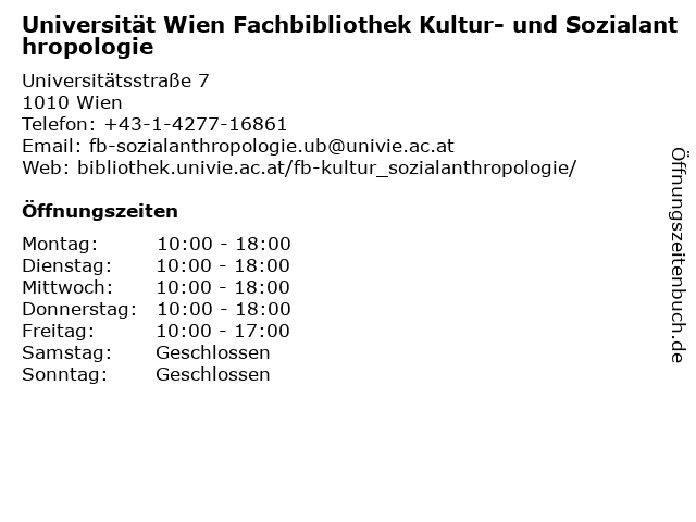 Branchen & Suchbegriffe zu Universität Wien Fachbibliothek Kultur- und Sozialanthropologie:bibliothek, buch, buchscanner, fachbibliothek, kultur, literaturen, sozialanthropologie, sprachen, universität, wien |