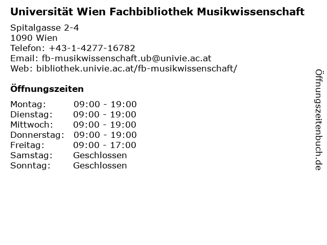 Branchen & Suchbegriffe zu Universität Wien Fachbibliothek Musikwissenschaft:bibliothek, buch, buchscanner, fachbibliothek, literaturen, musikwissenschaft, sprachen, universität, wien |