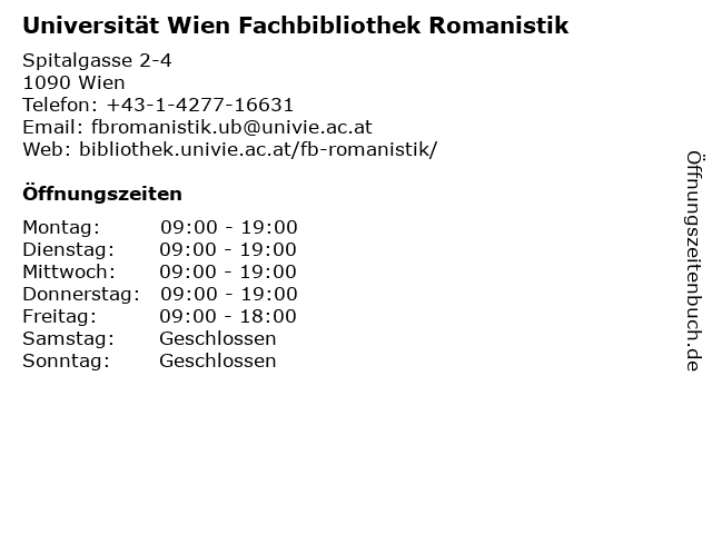 Branchen & Suchbegriffe zu Universität Wien Fachbibliothek Romanistik:bibliothek, buch, buchscanner, fachbibliothek, literaturen, romanistik, sprachen, universität, wien |