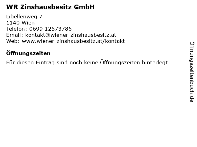 | Öffnungszeiten WR Zinshausbesitz GmbH in Wien anzeigen | |