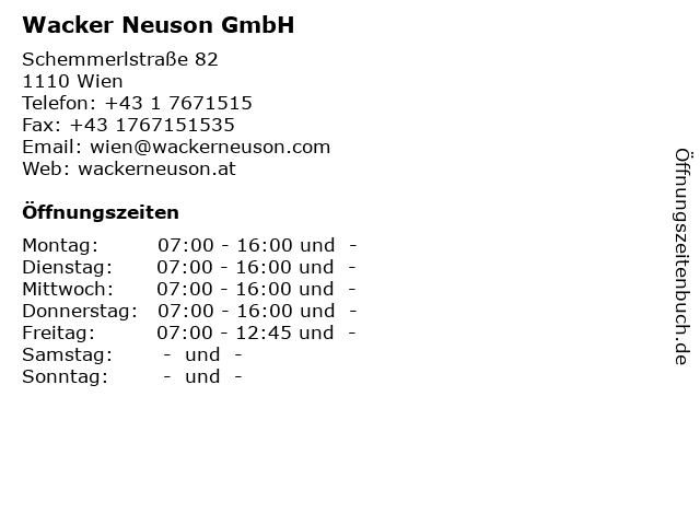| Öffnungszeiten Wacker Neuson GmbH in Wien anzeigen | |