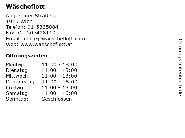 | Öffnungszeiten Wäscheflott in Wien anzeigen | |