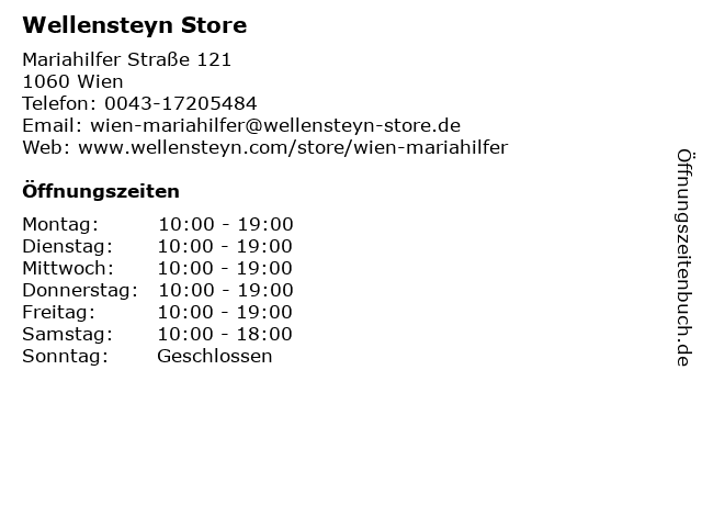 | Öffnungszeiten Wellensteyn Store in Wien anzeigen | |