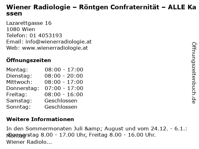 1 Wiener Radiologie - Röntgen Goldenes Kreuz - ALLE KASSEN (Entfernung: 0,01 km) Lazarettgasse 16, 1090 Wien 6 |