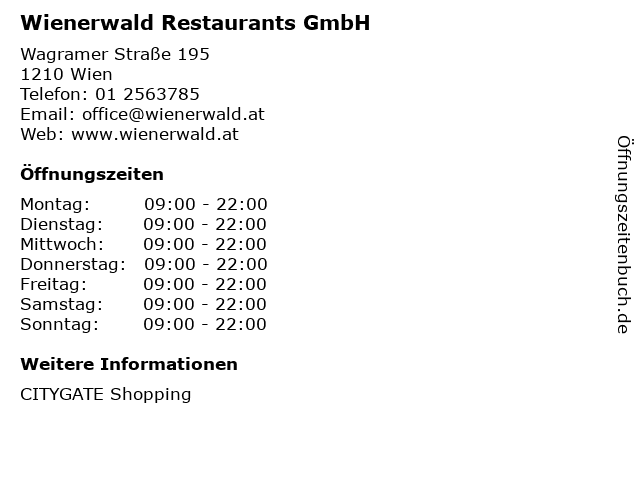 | Öffnungszeiten Wienerwald Restaurants GmbH in Wien anzeigen | |