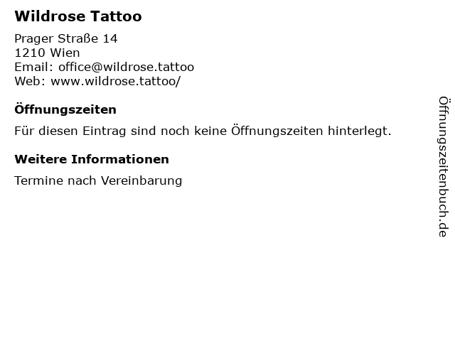 | Öffnungszeiten Wildrose Tattoo in Wien anzeigen | |