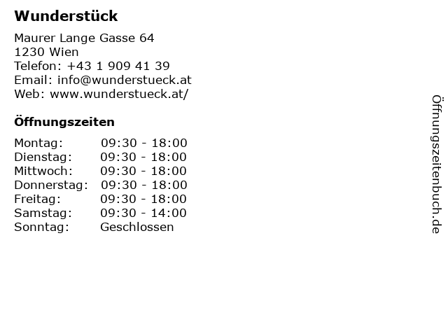 | Öffnungszeiten Wunderstück in Wien anzeigen | |