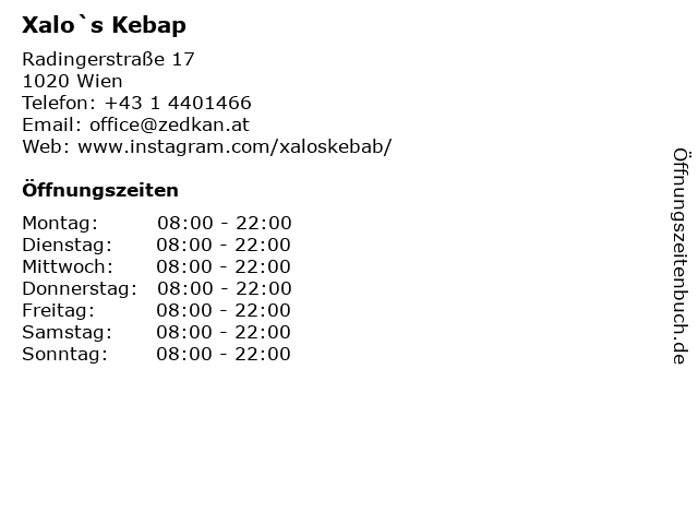 | Öffnungszeiten Xalo`s Kebap in Wien anzeigen | |