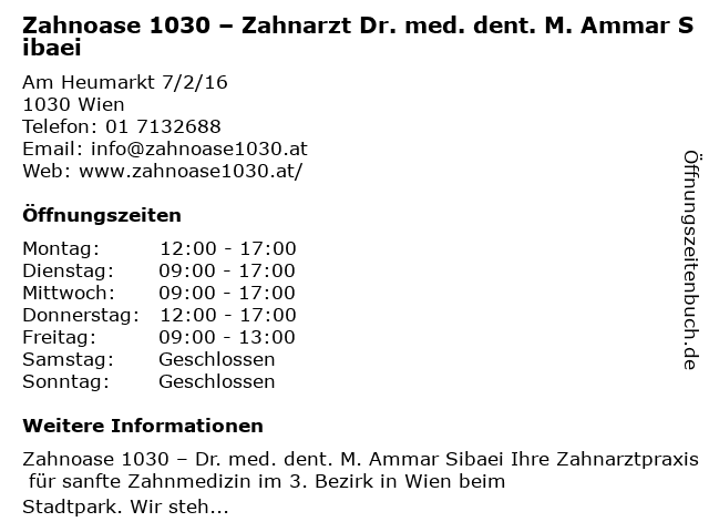 Branchen & Suchbegriffe zu Zahnoase 1030 – Zahnarzt Dr. med. dent. M. Ammar Sibaei:1030, ammar, dent., dr., m., med., sibaei, zahnarzt, zahnoase, – |