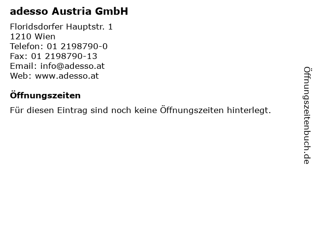 | Öffnungszeiten adesso Austria GmbH in Wien anzeigen | |