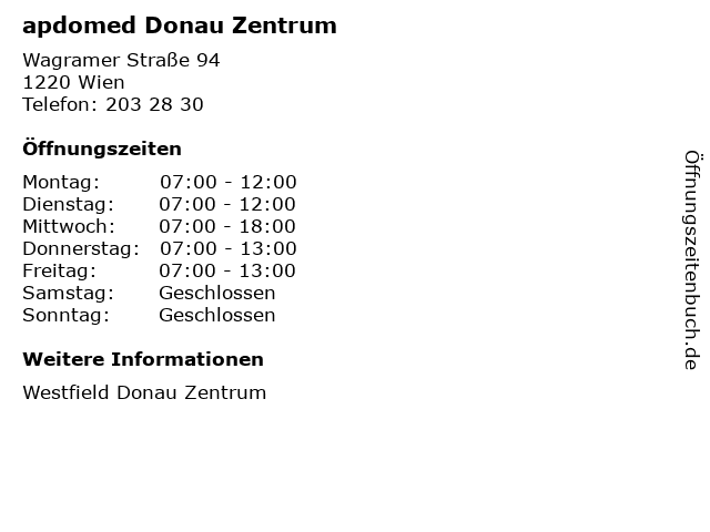| Öffnungszeiten apdomed Donau Zentrum in Wien anzeigen | |