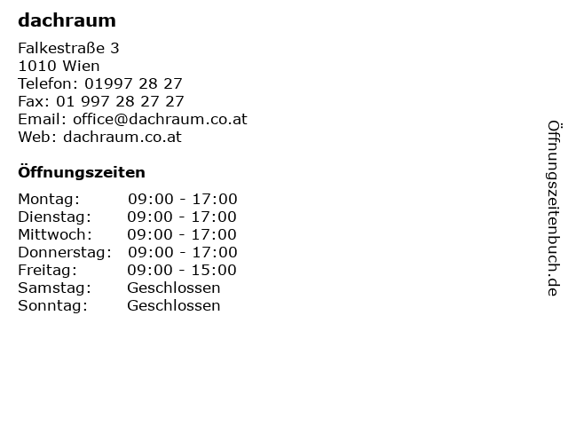 | Öffnungszeiten dachraum in Wien anzeigen | |
