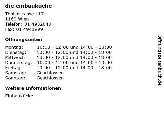 | Öffnungszeiten die einbauküche in Wien anzeigen | |