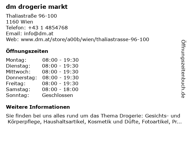 Öffnungszeiten dm drogerie markt in Wien anzeigen | |