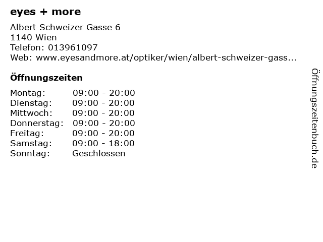 | Öffnungszeiten eyes + more in Wien anzeigen | |