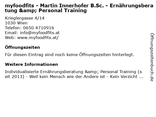 | myfoodfits - Martin Innerhofer B.Sc. - Ernährungsberatung & Personal Training anrufen | |
