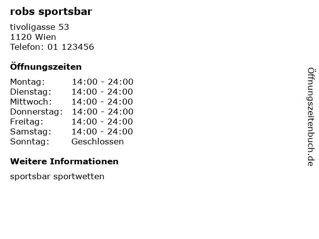 | Öffnungszeiten robs sportsbar in Wien anzeigen | |