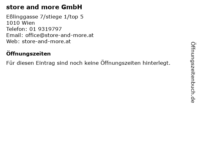 | Öffnungszeiten store and more GmbH in Wien anzeigen | |