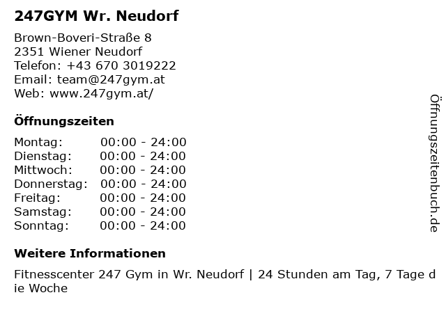 | Öffnungszeiten 247GYM Wr. Neudorf in Wiener Neudorf anzeigen | |