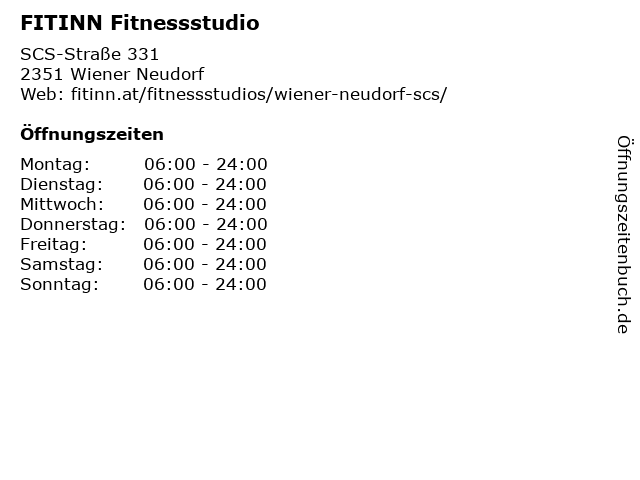 | Öffnungszeiten FITINN Fitnessstudio in Wiener Neudorf anzeigen | |