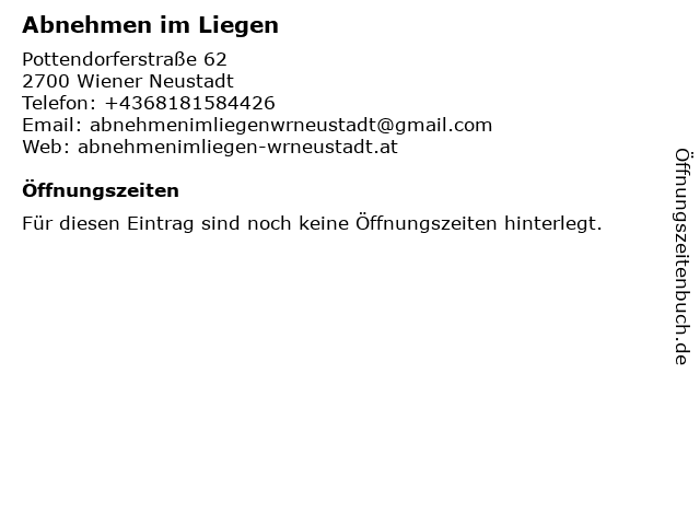 | Öffnungszeiten Abnehmen im Liegen in Wiener Neustadt anzeigen | |