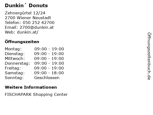 | Öffnungszeiten Dunkin´ Donuts in Wiener Neustadt anzeigen | |
