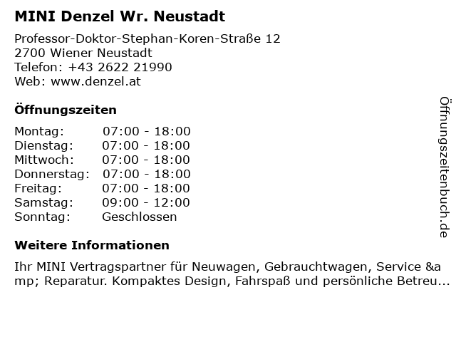 Branchen & Suchbegriffe zu MINI Denzel Wr. Neustadt:denzel, mini, wr. |