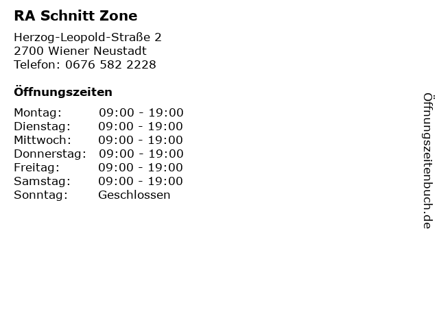 | Öffnungszeiten RA Schnitt Zone in Wiener Neustadt anzeigen | |