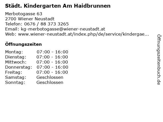 2 4 Städt. Kindergarten Schrattensteingasse (Entfernung: 1,21 km) Schrattensteingasse 28, 2700 Wiener Neustadt 6 Städt. Kindergarten Fischabachsiedlung (Entfernung: 1,74 km) Nikolaus Pacassi-Gasse 1, 2700 Wiener Neustadt |