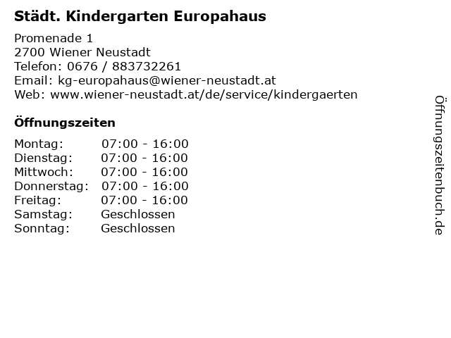 6 Städt. Kindergarten Ausstellungsgasse (Entfernung: 1,40 km) Ausstellungsgasse 5, 2700 Wiener Neustadt |